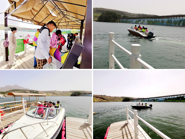 湖水環(huán)山而繞,在群山中蜿蜒流淌,摩托艇切割開波光粼粼的水面,劃出一道道優(yōu)美的弧線,成員們在浪花的飛濺中體驗了別樣的水上激情。