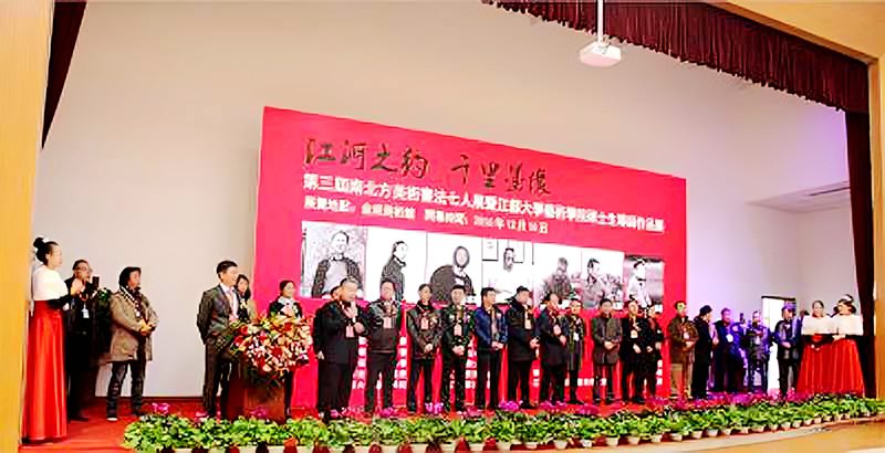 12月18日上午,“江河之約 千里墨緣”南北書畫家七人展暨江蘇大學(xué)藝術(shù)學(xué)院碩士生導(dǎo)師作品展在留各莊鎮(zhèn)金威美術(shù)館舉行。