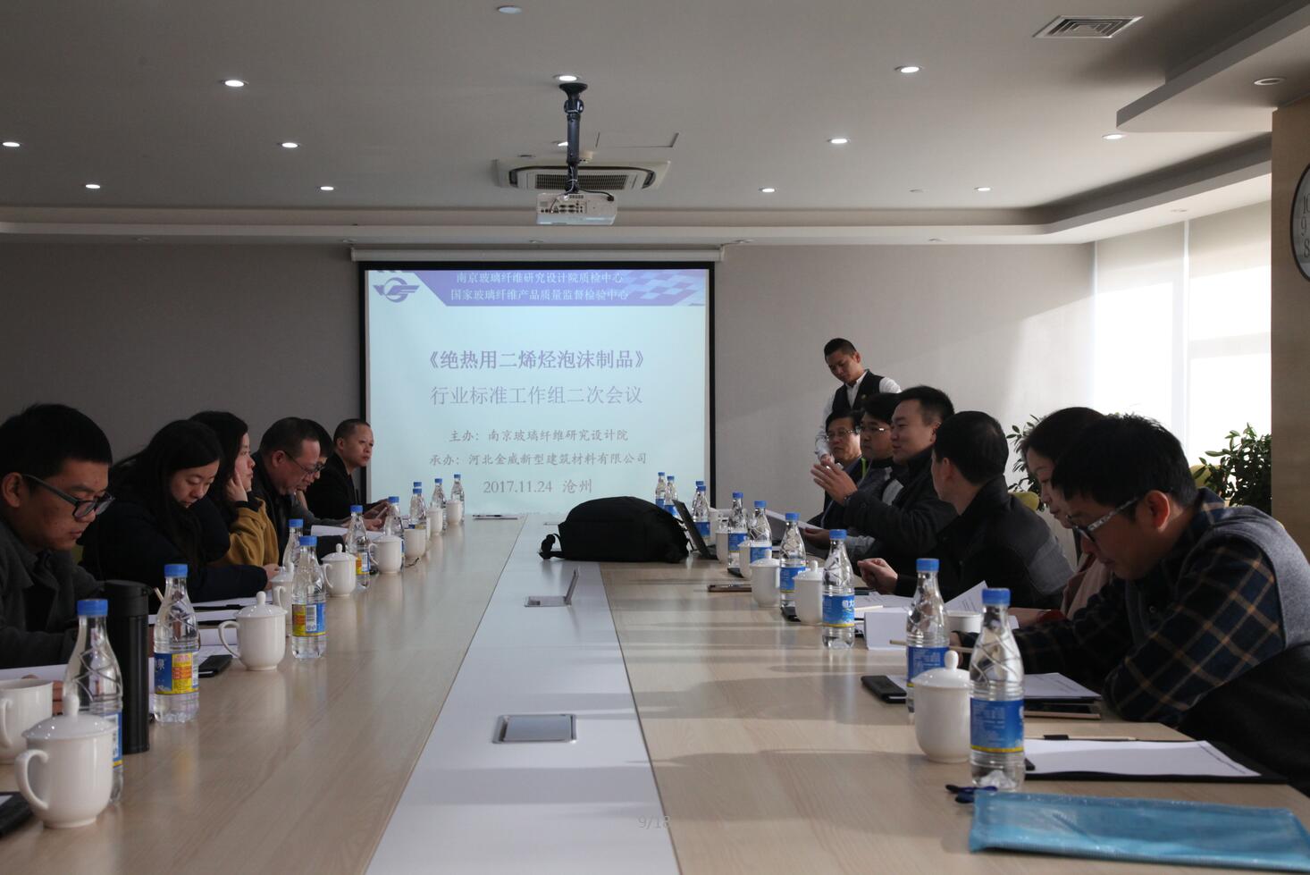 建材行業(yè)標(biāo)準(zhǔn)《絕熱用二烯烴泡沫制品》工作組二次會議于2017年11月24日在滄州渤海酒店召開。本次會議由南京玻璃纖維研究設(shè)計(jì)院主辦,河北金威新型建筑材料有限公司承辦。會議主要就《絕熱用二烯烴泡沫制品》標(biāo)準(zhǔn)的驗(yàn)證實(shí)驗(yàn)結(jié)果、返回意見和標(biāo)準(zhǔn)草案進(jìn)行了討論。