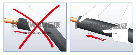 采用套管安裝時,只能推保溫管而不能拉伸它。如圖所示。