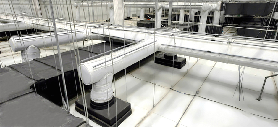 柔性風(fēng)管分布系統(tǒng)是由特殊纖維織成的柔性空氣分布系統(tǒng),作為替代風(fēng)管、風(fēng)閥、散流器、絕熱材料等的送出風(fēng)末端系統(tǒng)。