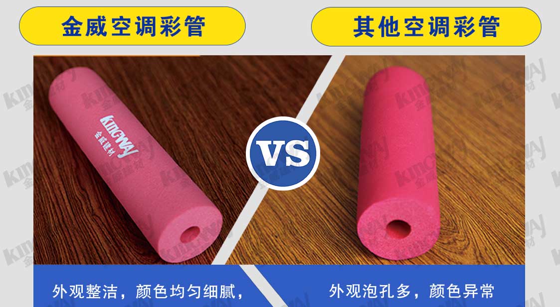 金威空調(diào)彩管優(yōu)選材質(zhì),具有良好的柔韌性,便于安裝操作,適用于空調(diào)的冷媒介質(zhì)系統(tǒng)中的銅管保溫領域。