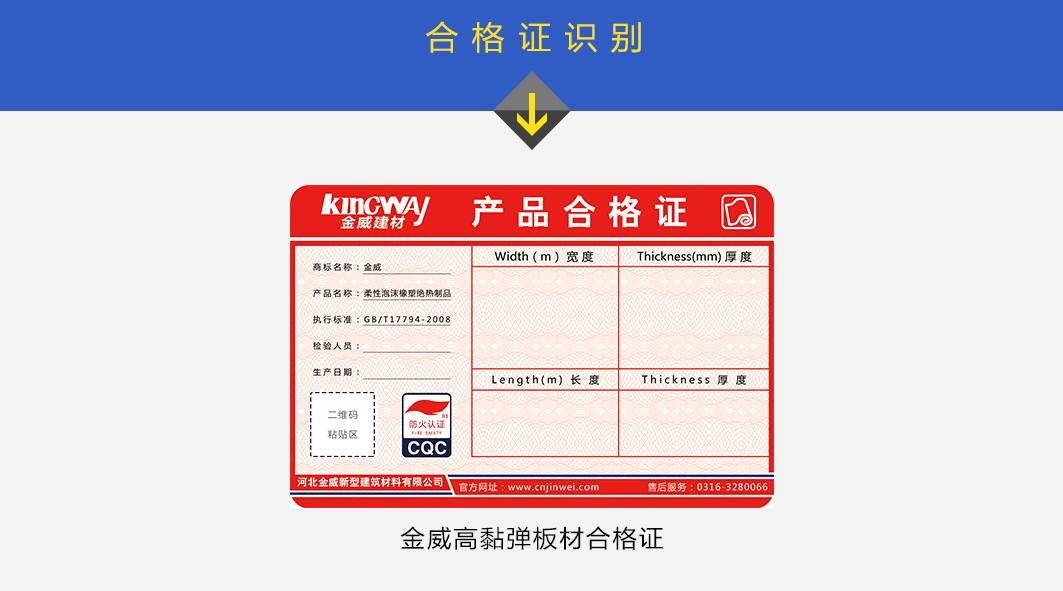 一、"金威"牌高黏彈柔性板產(chǎn)品每件包裝上都貼有本公司統(tǒng)一打印的合格證,發(fā)貨時(shí)并打印銷售人員二維碼,發(fā)貨日期與檢驗(yàn)人員編號(hào)。